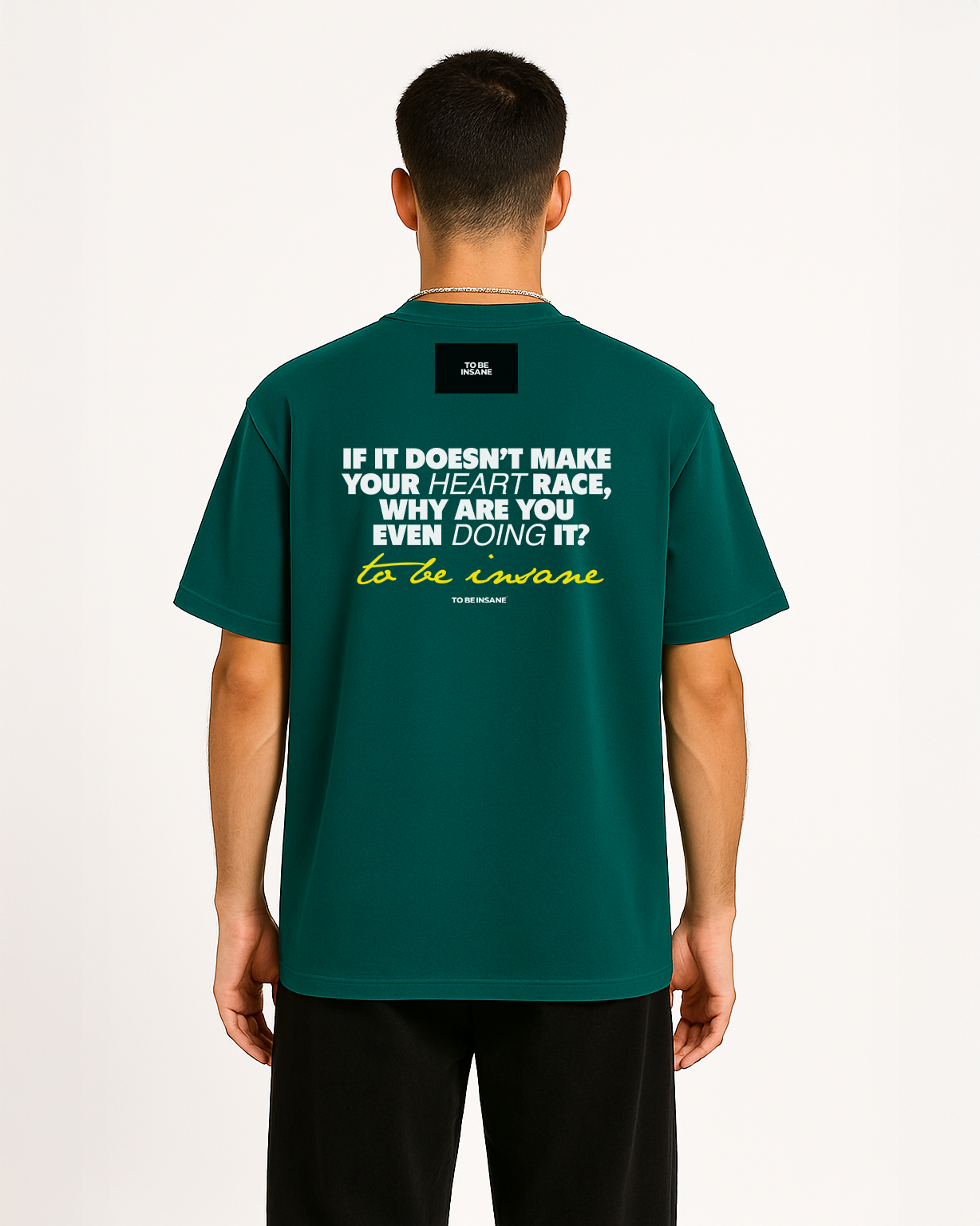 Unser Heart Racer Oversized T-Shirt in sattem Green pusht deinen Puls und deine Attitude zugleich. Für alle, die nur auf der Überholspur leben: Wenn dein Herz nicht schneller schlägt, ist es nicht wild genug. Willkommen bei TO BE INSANE – wir feiern Momente, die dir den Adrenalin-Kick geben!